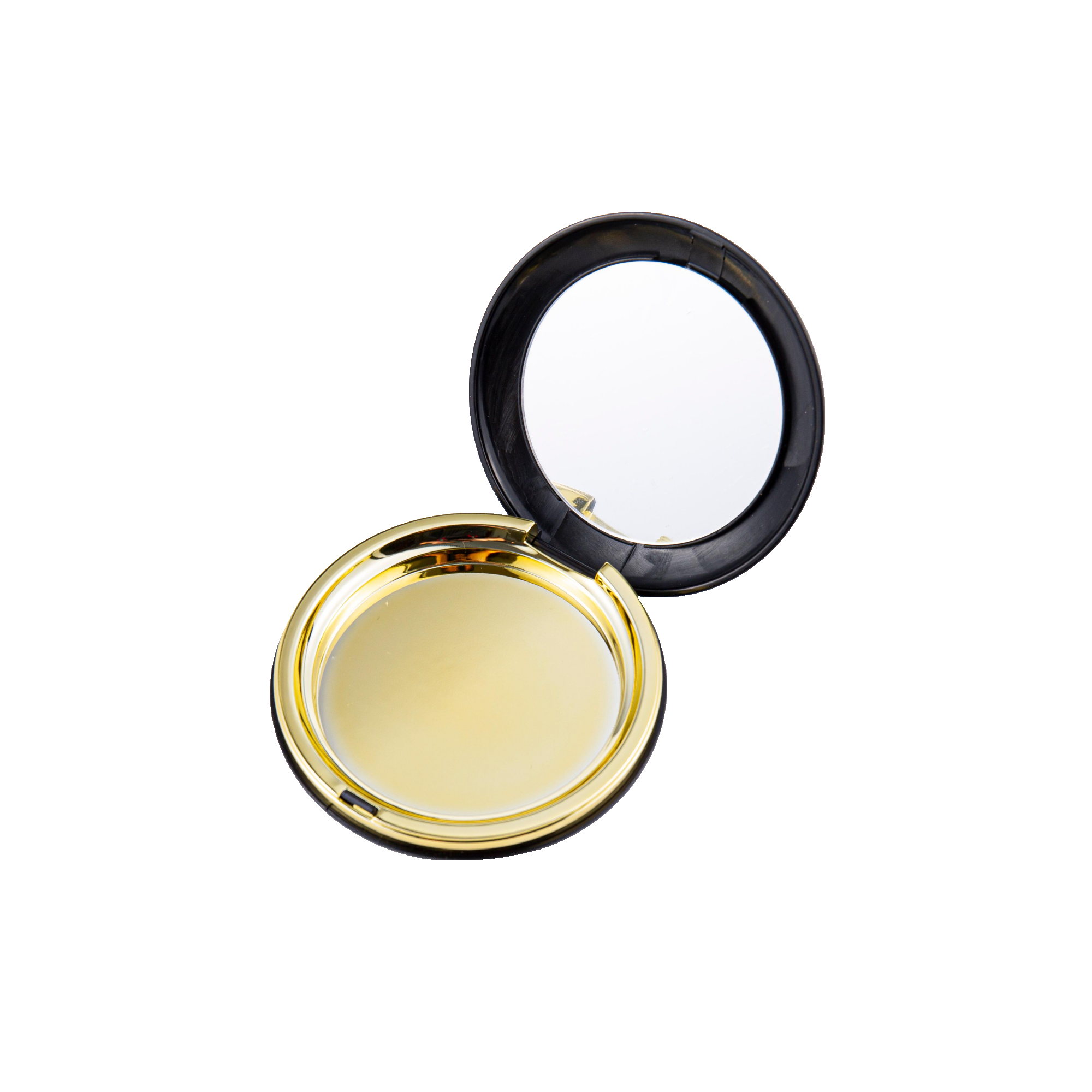 The 2511 minimalist round compact features a lid, a central pan, and a base. Crafted with a unique electroplating technique, it includes a small mirror for convenient touch-ups. Compact in size, it takes up minimal space